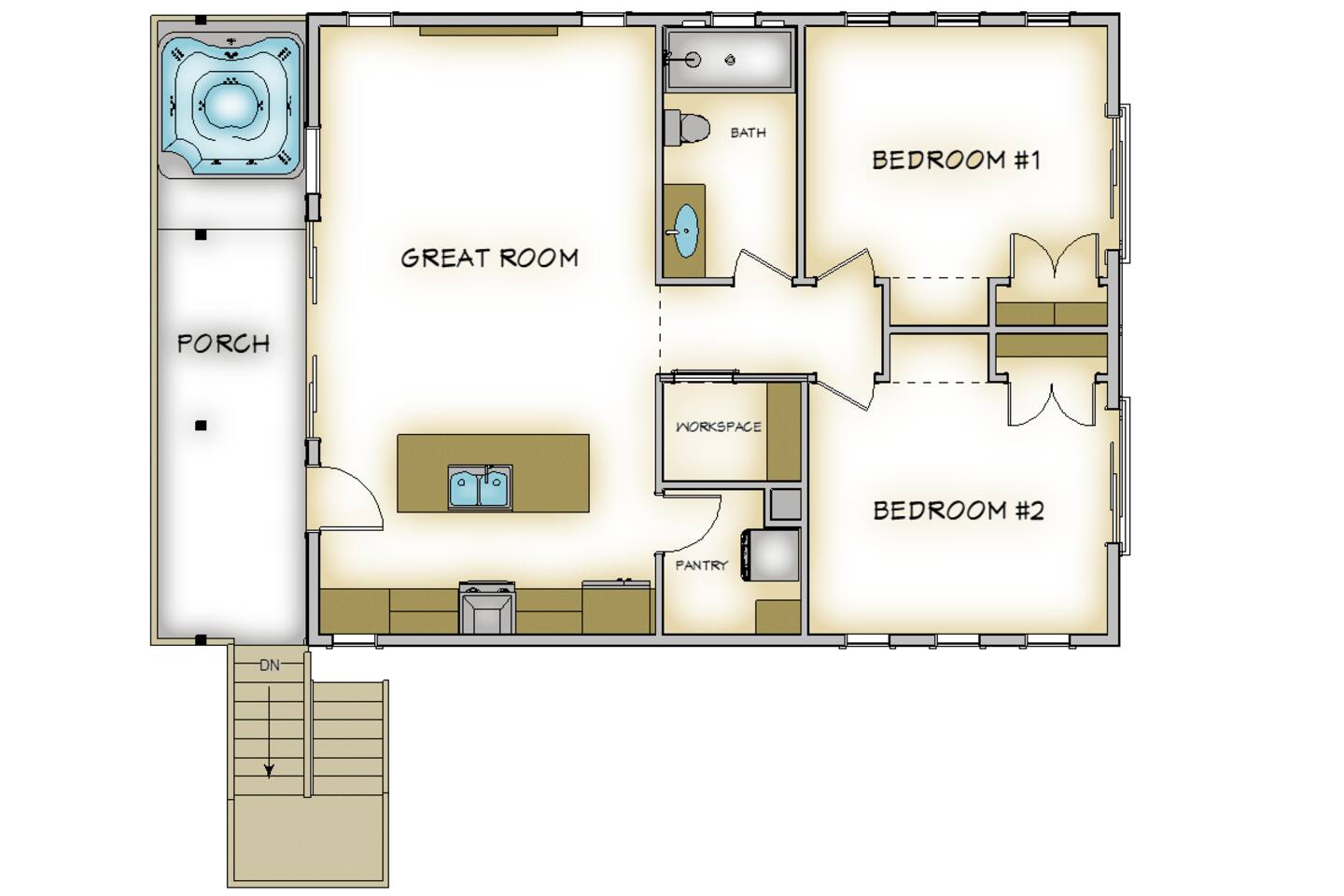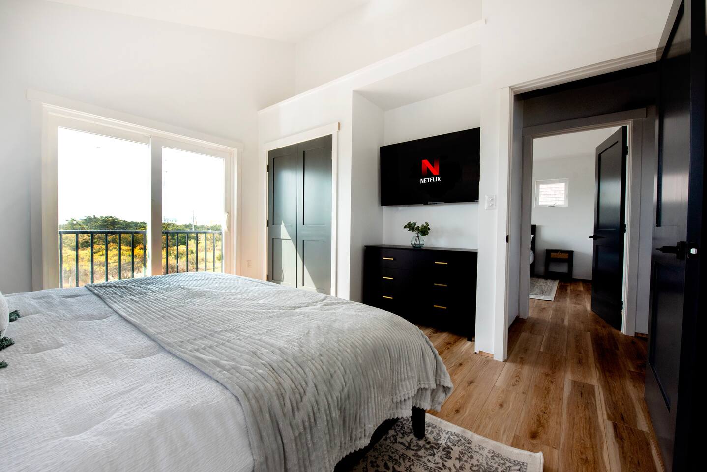 Both bedrooms have king beds. A full bath with tiled shower. Great room with beach views. Covered porch with step down hot tub.