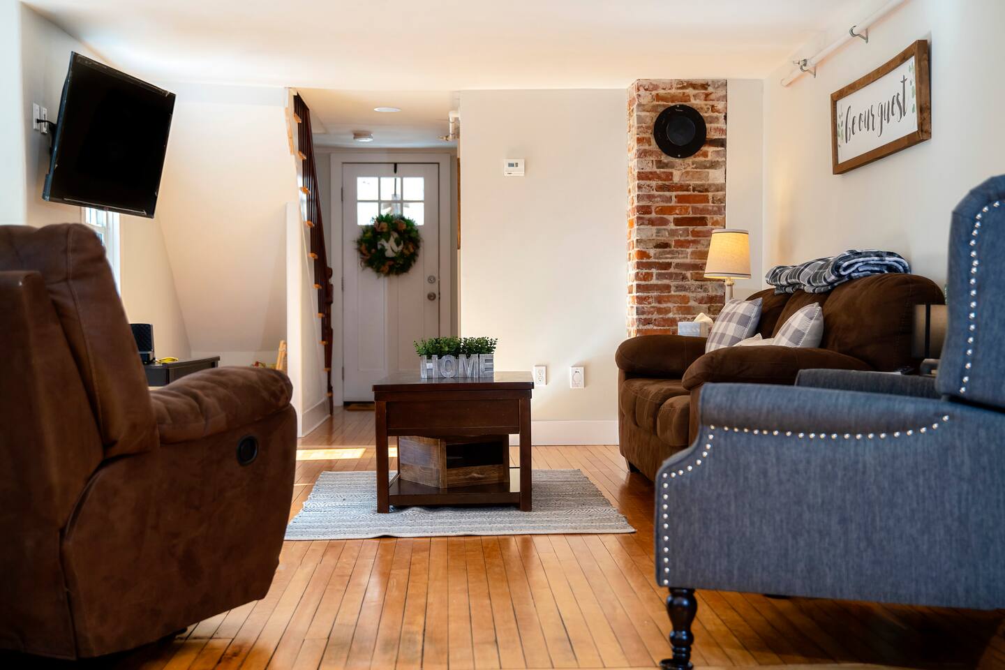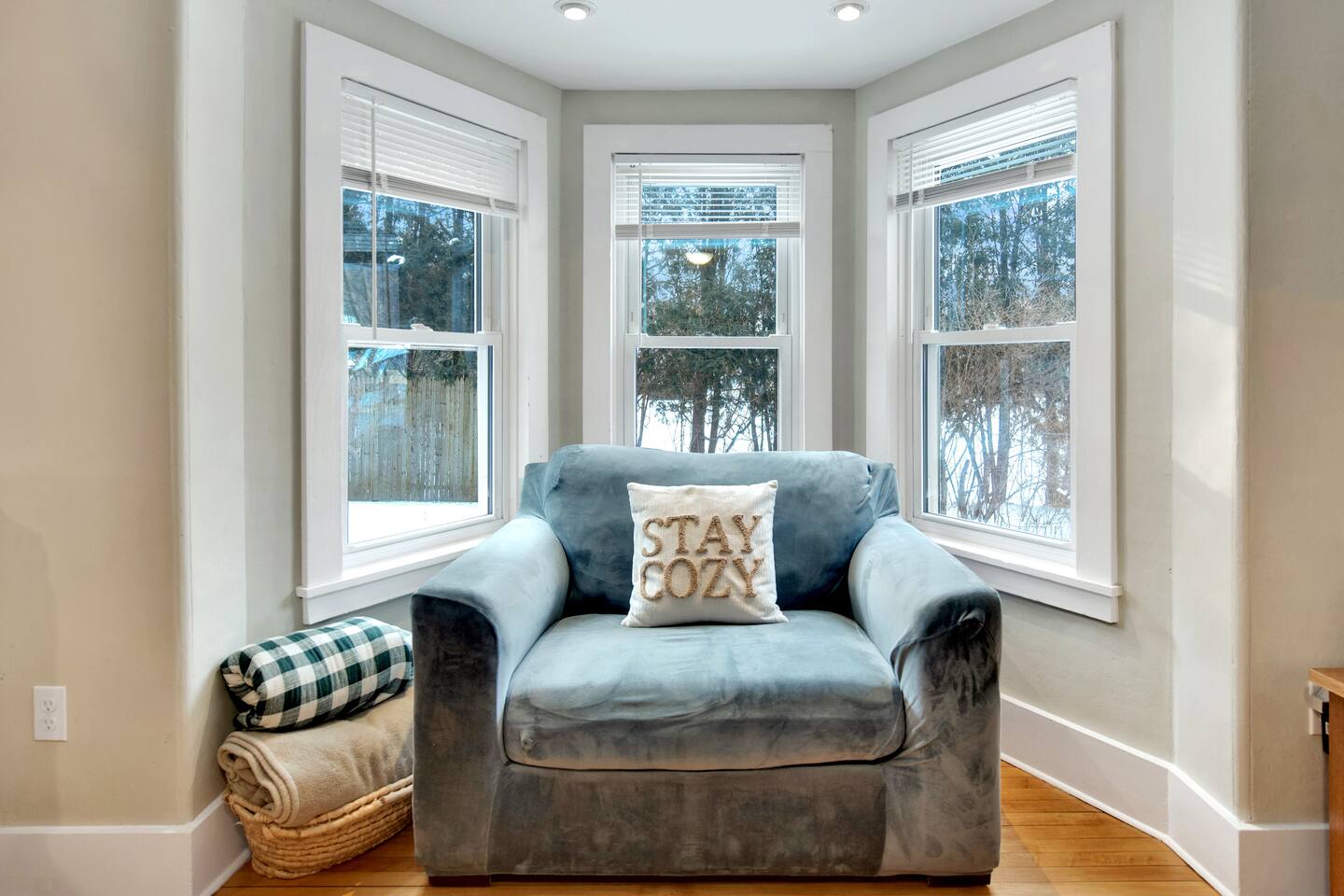 This is a Pet Free home. We do not allow parties or events. We've stocked the home with a reasonable amount of paper goods to get started, but you should plan on bringing additional supplies. We have a plow service to take care of the driveway, sand and shovel the steps. He will arrive after the storm has passed. If you notice that the entry steps look slippery or hazardous, there is a snow shovel and bucket of salt in the entry for your convenience. You may be messaged after a storm to assist the plow driver by moving your vehicles so he can make the driveway safe for the remainder of your stay. There is limited cell service in this area. AT&T customers have better service, but none for Verizon. The home is located across the street from an industrial cotton mill and nearby treatment facility. This home is equipped with 2 NoiseAware devices. One inside and one outside. This device does not record audio, but monitors decibel levels. When noise reaches a preset threshold for a sustained time you will receive a message to respectfully reduce the noise to a reasonable level. These devices help us keep noise down for the benefit of the neighborhood.