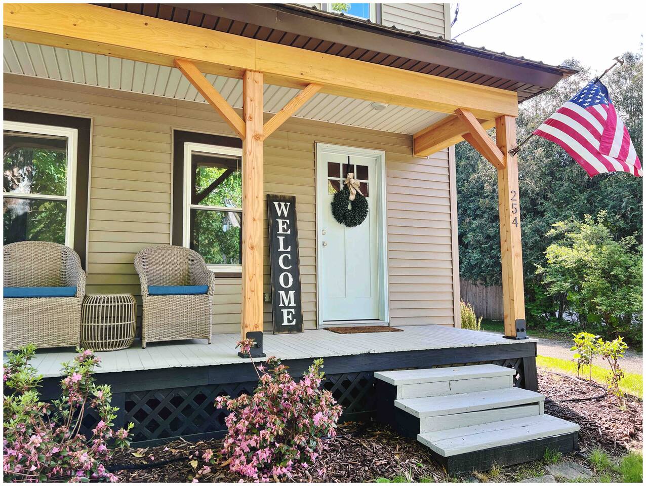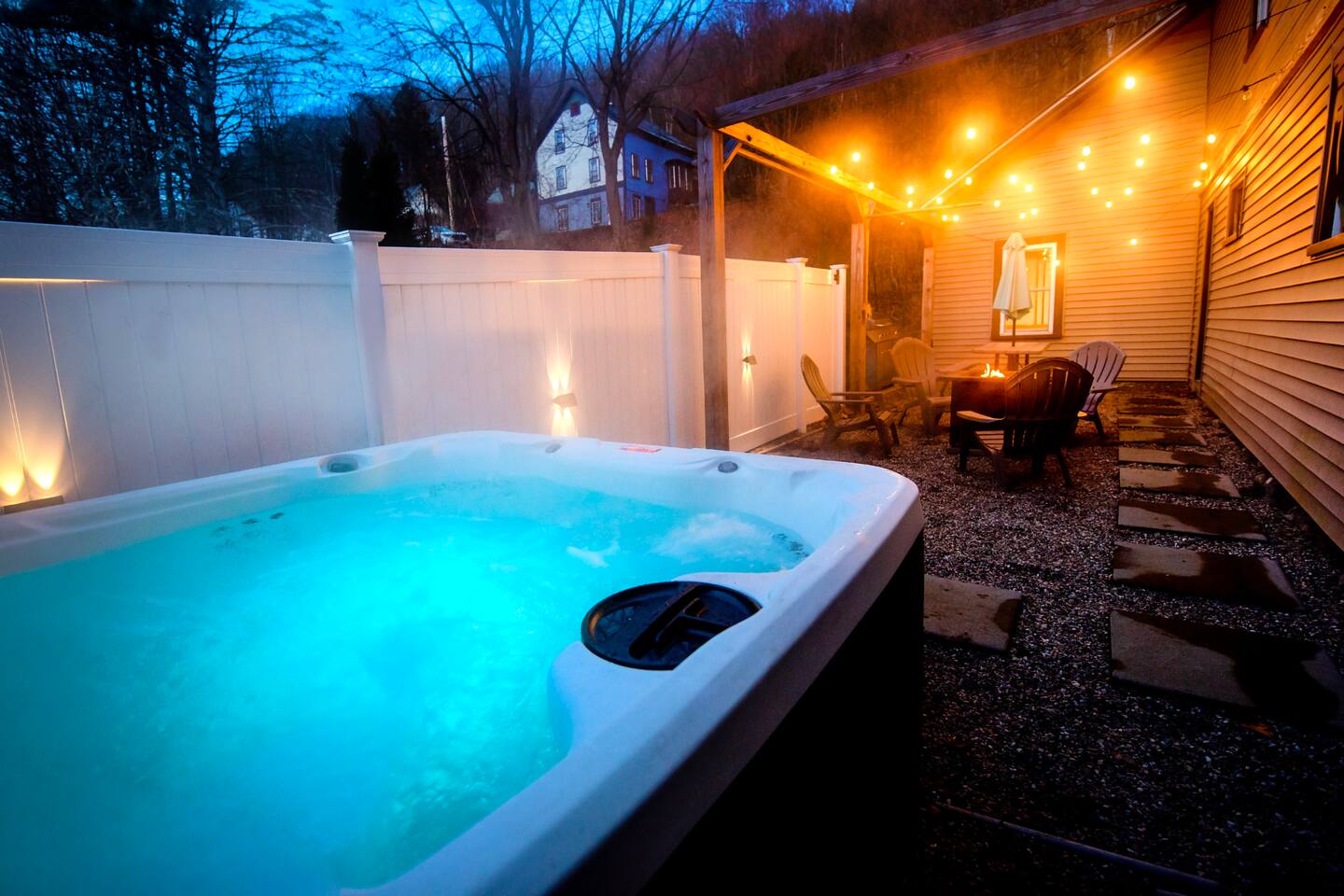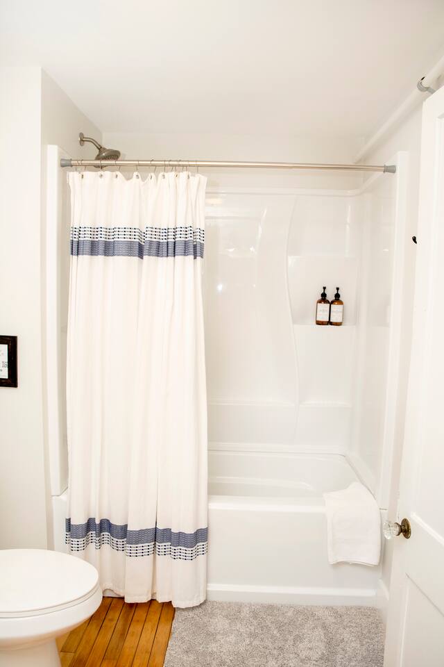 Follow us on Social Media ! @stay.shire More than just the usual comforts! We are calling it millhouse254 after its original constructed purpose to house workers for the local mills and factories. 1 King bedroom and bath on the main level w/3' doors for accessibility. 4 bedrooms and a full bath on the upper level. 4 out of the 5 bedroom and the common spaces have window AC units. Digital lock for check in. Off street parking for 4 vehicles. Main level includes full kitchen, laundry, air hockey table, porch, Broadband and WIFI. Toys, pack n play, booster chair, BBQ grill, microwave, double toaster, blender, griddle. This property has also been updated with smoke/CO alarms, fire extinguishers as well as meeting fire compliance with a new sprinkler system. We're one of the only listings in the area with one! Our home is perfect for families or larger groups, as well as individuals with limited mobility. We understand that traveling with small children can be a daunting task and remembering to pack everything is near impossible! Let us take part of the stress away for you. Included with the home is a highchair, pack and play, children's' toys and some other small essentials. The second floor bath has a tub/shower for relaxing or bathing the kids. Each bedroom has privacy blinds, luggage racks full length mirrors. Shared air conditioner in the hallway and living room. The first floor bedroom has a king bed, dresser and large closet Three of the second floor bedrooms have queen beds and large closets. The kids room has two twin beds and a Roku TV. The front porch includes patio seating. The yard has 6 Adirondack chairs a six person picnic table and a gas fire pit. (Seasonally) Year round Hot Tub right next to the firepit.