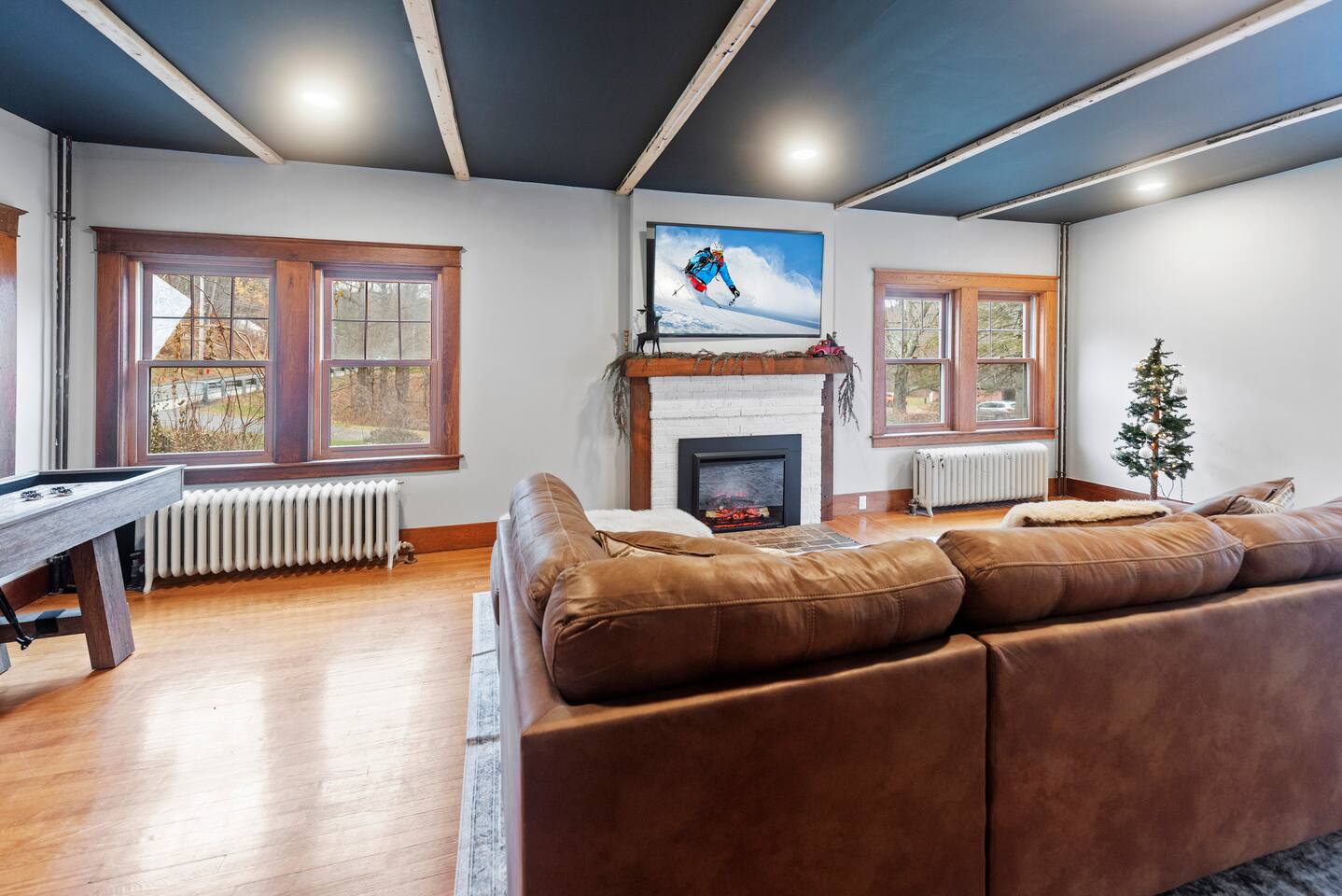 Step into timeless charm and modern luxury at this newly renovated 5-bedroom getaway, designed with elegant 1920s-inspired décor. Located less than 3 miles from Berkshire East Resort, this spacious home offers the perfect basecamp for year-round adventures—whether you’re skiing, snowboarding, zip-lining, mountain biking, or rafting. Make memories in New England’s playground—where adventure, relaxation, and style come together.